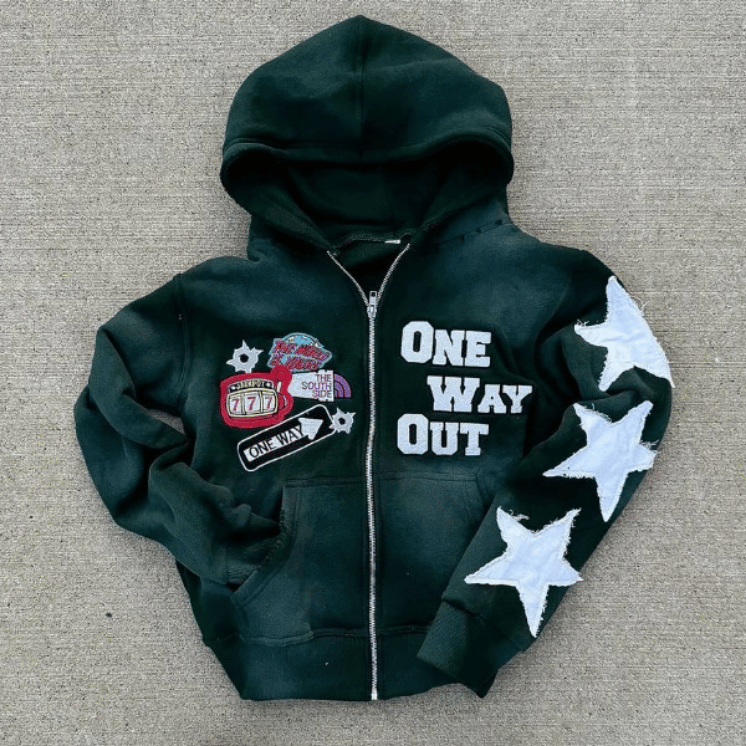 Acid Wash French Terry Hoodie Custom Streetwear Boxy Cropped Distressed Vintage Embroidery Patch Zip Up Hoodie