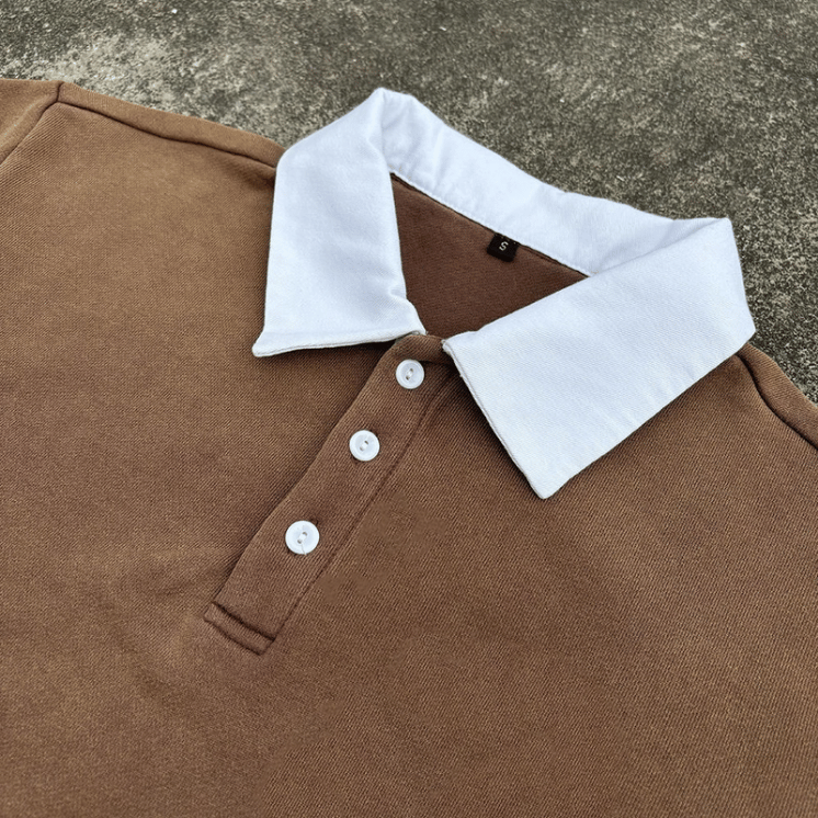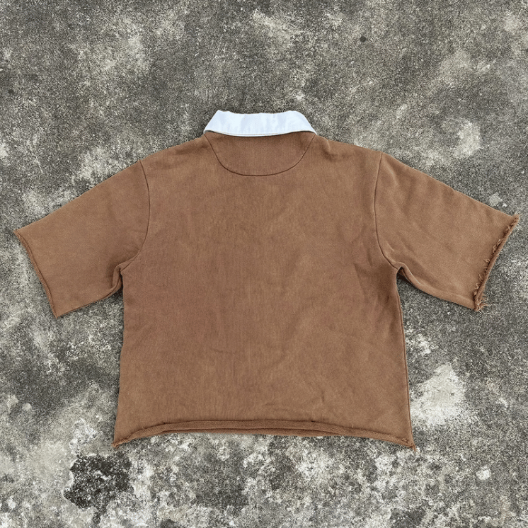 Cotton Vintage Acid Wash Boxy Cropped Homme Short Sleeve Polo T-Shirt