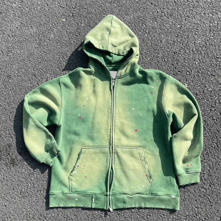 Heavyweight Oversize Crop Boxy Zip Up Stone Acid Wash Distressed Hoodie Unisex Sun Faded Zipper Vintage Hoodie