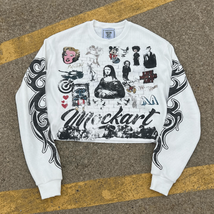 Custom Streetwear Box Fit Sweat Shirt Waffle or Cotton Boxy Cropped Long Sleeve T-Shirt