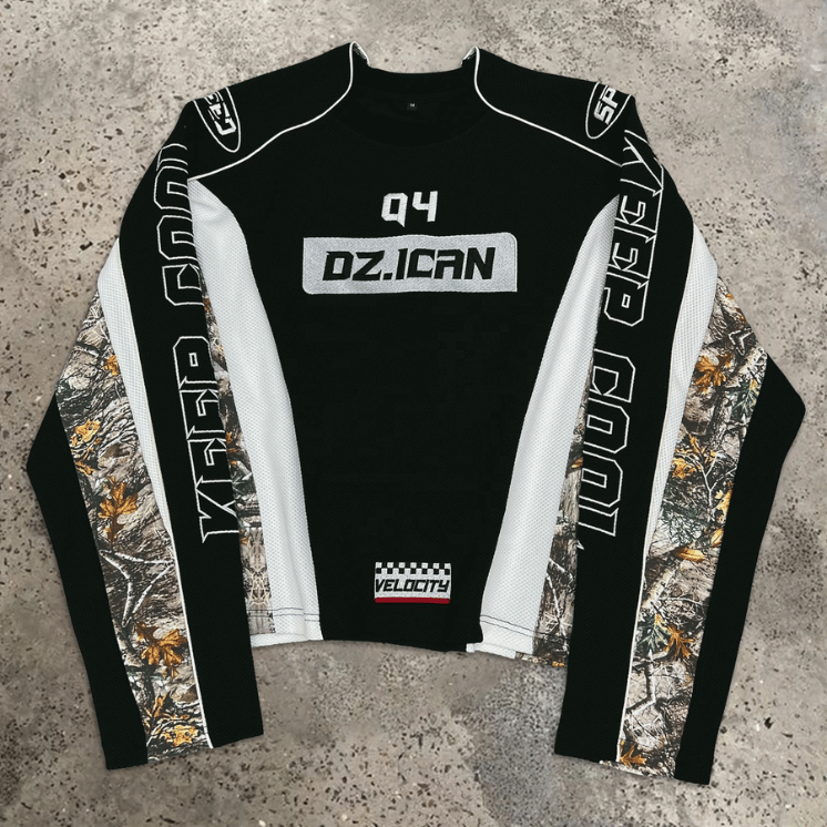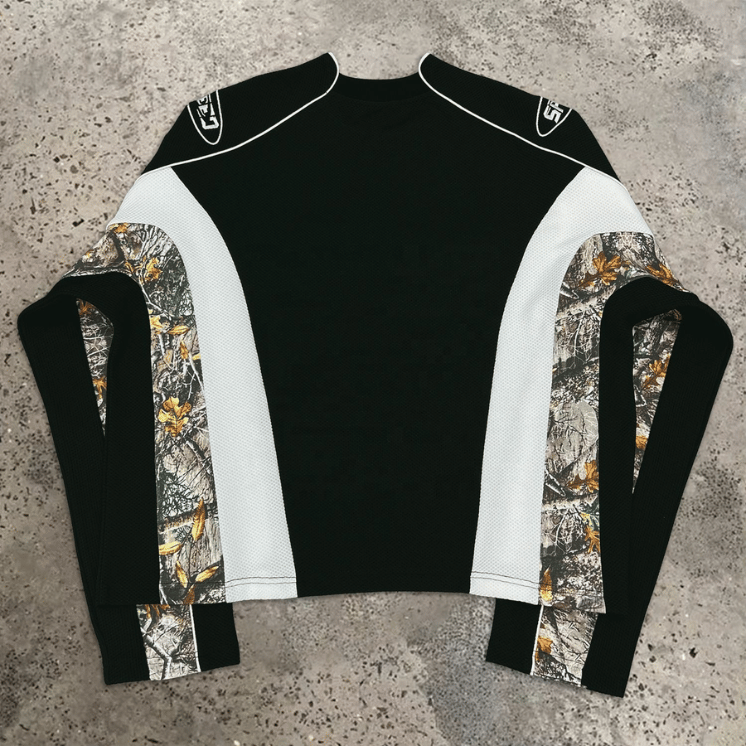 Luxury Oversized Waffle Sweatshirt with Embroidery Patchwork and Custom Real Tree Print