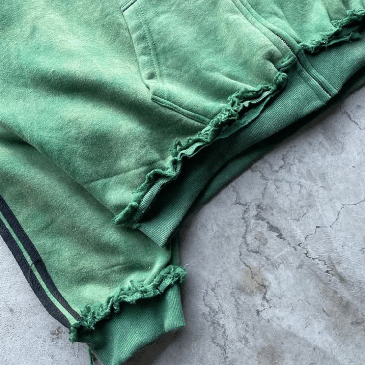 Reversible Reverse Weave Heavy Weight Cotton Distressed Vintage Acid Wash Oversized Boxy Zip Up Double Hooded Hoodie