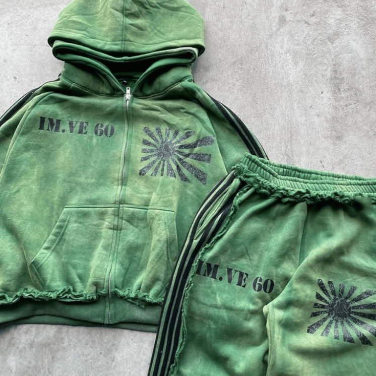Vintage Acid Wash Reverse Stitch Double Hood Hoodie And Sweat pant