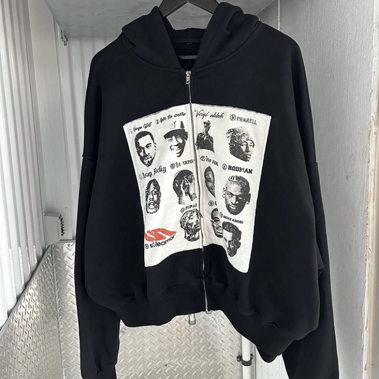 Zip Up Heavyweight Distressed Embroidery Patch Hoodie